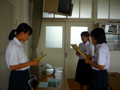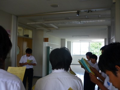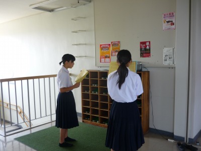 メモを見ずに堂々と話し,時間もピッタリでした。人前で話すことは緊張しますが,とてもよい経験になります。すばらしい発表でした。