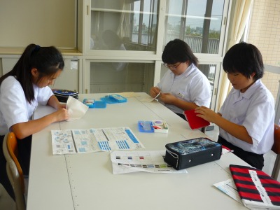 1年B組は家庭科のバックの製作中です。ポケットを縫う生徒,それを本体につけようとしている生徒と進度はそれぞれですが,一生懸命に取り組んでいました。完成が楽しみですね。