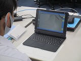 数学ではタブレットを活用した「図形と相似」の授業に挑戦していました。