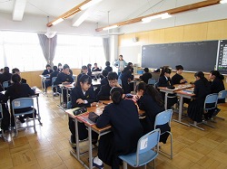 昨日から授業がはじまりました。どの生徒も気を引き締めて授業を受けている様子が見られました。1年生は英語、2年生は国語、3年生は体育の様子です。