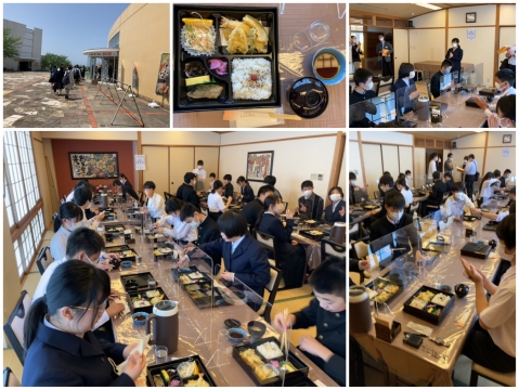 修学旅行最後の食事となりました。 黙食なのが、辛いですねぇ。  感謝して、いただきましょう。 |