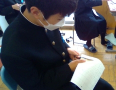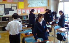 今日は新聞交流会の続きをし、発表者に対して書いたメッセージカードの交換会を行いました。