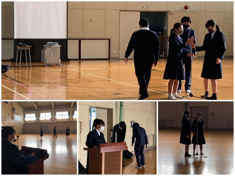 早朝から、生徒会役員が対面式の準備をしています。