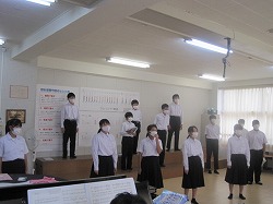 今日の音楽の時間に,文化祭で歌う合唱の練習をしていました。先日,馬場先生に教えていただいたことを中心に頑張っていました!文化祭まであと3週間!一人ひとりが歌に気持ちを乗せてつくりあげてください!