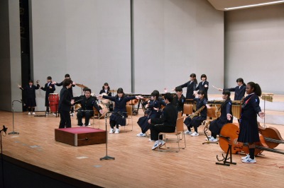 橋北中の生徒が耳傾ける 橋北交流会館で学び舎音楽会