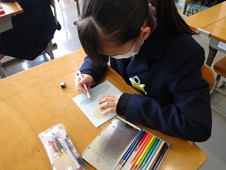 3時間目、3年生の美術の授業にお邪魔しました。もう授業数も残り少ない中、