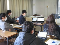 Zoomによる(株)COMPASSの佐々木さんの解説のもと、本校職員だけでなく教育支援課の皆さんも一緒に研修することができました。
