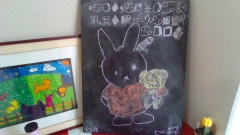 ウサギ年にちなんだ掲示物やクイズ形式の壁面構成など