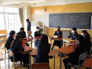3年生は4月27日からの修学旅行にむけて、首脳会談中でした。