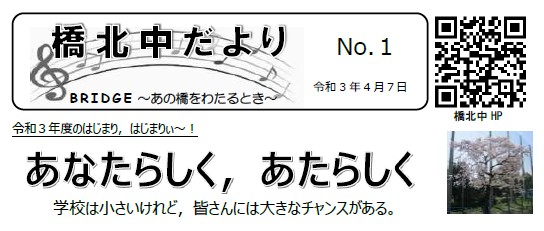 昨日の始業式・入学式も無事終わり、本日7日(水)本年度第1号となる「橋北中だより」を配布します。