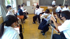 1・2年生の新人大会を学校で応援している3年生。