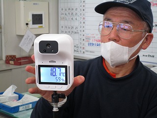 3月11日(木)橋北地区社会福祉協議会の服部会長が、避難所として指定されている橋北中学校にも「非接触型赤外線検温計」を持ってきていただきました。
