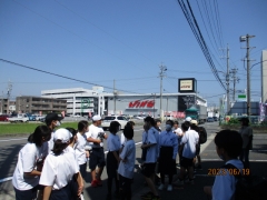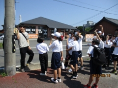 5限目に、防災学習として地震の後の津波避難について学習しました。6限目には、電信柱の海抜の表示を見ながら、阿倉川駅に向かって歩いていきました。「交差点はどうなる?」「踏切はどうなる?」「踏切を渡らずに阿倉川駅に向かうときはどこを通るとよい?」などと考えたり、阿倉川駅の上に少し上ると、海抜10メートルをこえることを確認したりして、晴天の心地よい風をみんなで感じて、1年生は歩いて学びを深めました。