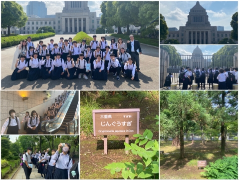 国会議事堂の外で三重県の木「じんぐうすぎ」を発見しました。お天気もびっくりするほど快晴!快適に過ごしています。