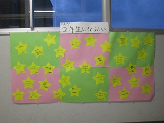 この一年「こんな自分になりたい」と目標をかかげたことを掲示しました。いつも目にできるよう、また、お互い励ましあえるよう、「ポラリス」に一