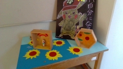 そこで、部員一丸となって、壁面構成を考え掲示しました。