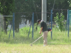 承知の通り、18日(日)橋北中学校グラウンドの草取りを予定しています。学校の方でも参加の確認の用紙を回収しましたが、多くの保護者の方々、生徒のみなさんに参加していただけます。しかし、グラウンドの草は日々成長しており、草取りの日だけではすべてを抜き切るには到底きびしい状況ですので、本日、校長先生をはじめ、職員数名で草取りをおこなっています。草取り当日の18日、地域のみな様をはじめ、保護者の方々、生徒のみなさんのお力をお借りしたいと思います。よろしくお願いします。