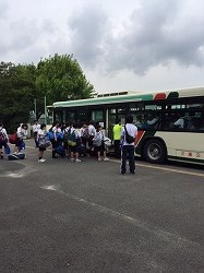 自然の家に荷物を置いてからスポーツランドに着きました。今からアスレチックを班ごとに楽しみます。天気が心配ですが、今のところ雨は降っていません。熱中症の心配はなさそうです。