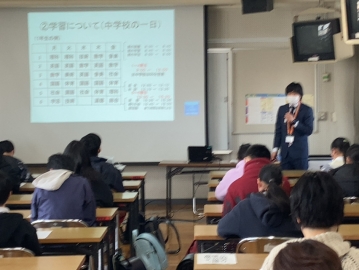 体験授業の後は、保護者も交えて学校の説明を行います。