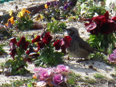 今日は、なぜだか赤色の花を美味しそうに召し上がっていました。ただ、この鳥の名前がよくわかりませんので、ご存知の方は橋北中学校【330-0040】までお電話ください。