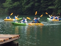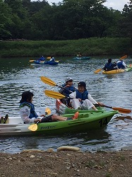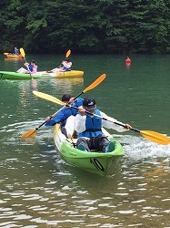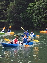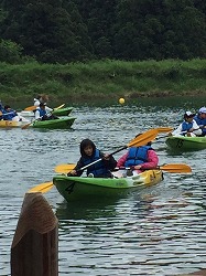 カヤックは5年生の時に一度体験しているので、ほとんどの生徒が最初からうまく漕げます。そのため、スタッフの指示に従ってその場で一周したり、みんなで集まったりするなど、ワンランク上のいろいろな楽しみ方をしました。