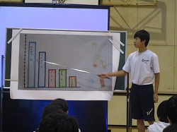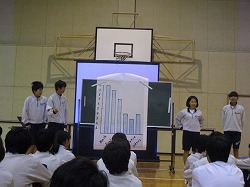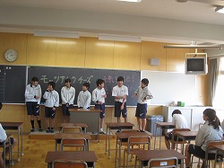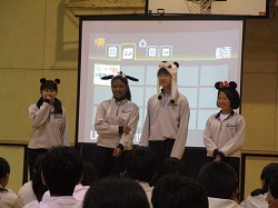 今日の5,6限目に生徒会主体の行事がありました。最初に2年生の英語のプレゼンテーションがありました。内容は自分のクラスのことについてまとめて英語で発表するものでした。どの班もとても上手にできていました。次に,全校生徒でレクを行いました。タイトルは「ユアサ王子を救え!」で,グループ対抗で行われました。クイズや大縄などにグループで協力して行うものでした。どのグループも協力して行うことができ,無事に救うことができました。生徒会のみなさん準備から当日までお疲れ様でした。