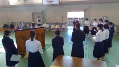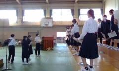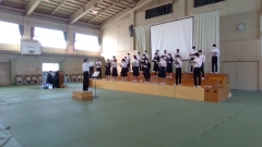 体育館での合唱練習(3年)