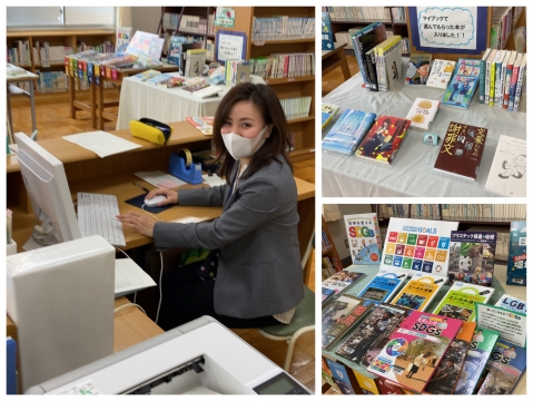 図書館内はもちろんのこと、昇降口や各教室の前に、様々なテーマで本を並べ、