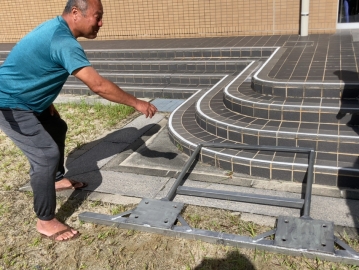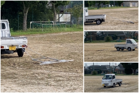 せっかく草がなくなった運動場。次は、平らにならすことで怪我をしないようしていきます。