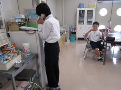 今日は、3学年とも耳鼻科健診を行いました。年に1回健診は行っています。どの生徒も静かに並んで待っていることができました。まだこれからも健診は続きます。しっかりと診てもらいましょう。