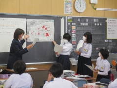 知識や技能を得るだけでない、授業で身に着けた見方・考え方を働かせ課題を解決する、まさに活きた社会科ですね。今回は2年生の地理的分野での発表でしたが、3年生になり公民的分野の学習によって、政治、法、税などの新しい視点が加わると、さらに深い追究ができそうですね。