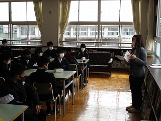本日、1,2年生を対象に司書さんによるブックトークが行われています。
