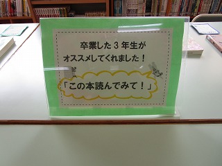 *図書室に、先日卒業した3年生のおすすめの本も紹介されていましたよ!