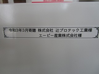 本日 (株)辻プロテック 様と エービー産業株式会社 様より 「足踏み式消毒液スタンド」を寄贈していただきました。
