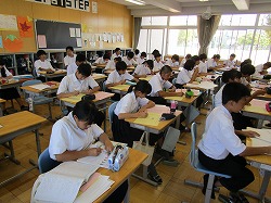 今日はテスト範囲が発表されました。6限目にどの学年もテスト計画を立てました。2.3年生など学年が上がるにつれて、いい計画が立てられるようになってきました。
