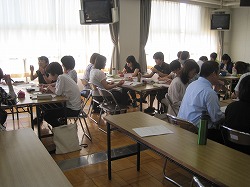 本日は、三重大学准教授の守田先生と市教育委員会の指導主事を迎えて、「学びの一体化全体研修会(保幼小中連携の研修会)」を行いました。内容は、各学校や園での言語活動の取り組みの交流と連携についてのグループ討議と守田先生による「問題解決能力を育てる言語活動」と題して講演を行っていただきました。本校が目指している研修テーマにたくさんのアドバイスをいただき、先生方の授業のヒントとなりました。