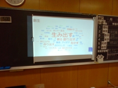 6限目、学校教育目標の「自律」「協働」「創生」にちなんだ1年間の個人目標をたてました。みんなでそれぞれについて意見を出し合って、1年生にとっての「自律」とは、「協働」とは「創生」とは何なのかをテキストマイニングし、それを自分自身の目標を考える材料にしながら、考えることを進めていきました。