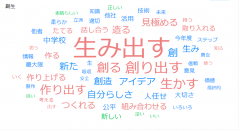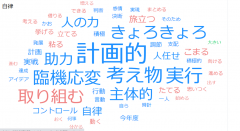 下の図をご覧ください。1年生がみんなで考え出した「自律」「協働」「創生」のキーワードです。テキストマイニングしてみました。