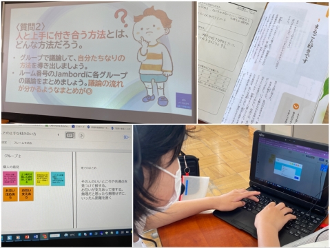 2年生の道徳では、「まるごと好きになる」という文章から「上手な人との付き合い方」について考えています。本文には「嫌いな部分もひっくるめてまるごと好きになる」なんて書かれているけれど、本当にそんなことできる?JamboardとZoomを使ってグループごとに議論中!
