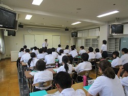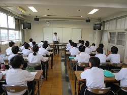 本日、2年生で進路学習の一環として、四郷高校の山添教頭先生に来ていただき、お話をしていただきました。高校生活についての説明、中学校との違い、今頑張っておくべきことなど様々な話をしていただきました。生徒たちは一生懸命話を聞き、積極的に質問をしていました。