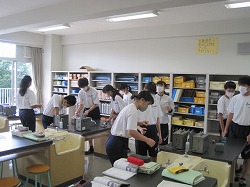3年生で今日の1限目にいろいろな水溶液に電気を通すか実験を行いました。久しぶりの物質の実験でとても楽しそうな表情で行っていました。どの班も協力してスムーズに実験が進みました。結果から考察を考えて行きましょう。