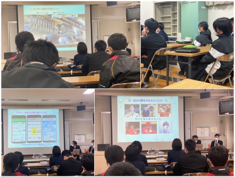2年生の6限目は、昨年度に引き続き、佐藤先生と金子先生お招きしての「志授業」です。ご自身の経験や著名人の軌跡など、様々な例を通して、志を持って夢を追いかけるためのヒントを教えていただきました。
