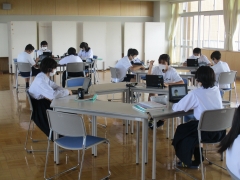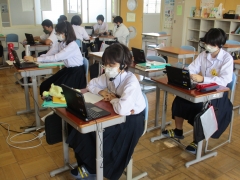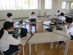 2年生の社会科(地理的分野の学習)では、「日本の諸地域」の学習を終え、「地域の在り方」を考察し、構想する単元をおこなっています。先週の授業で、地域(橋北地区)の課題を見つけ解決策を考察し、それをもとに今週は、「持続可能な橋北地区にしていくための構想を練り提案する」パフォーマンス課題にグループで取り組んでいます。まさに、今の学習指導要領でもとめられている、学んだ知識・技能を活用する力や、身に着けた地理的な見方・考え方を働かせる思考力・判断力・表現力を試す課題になります。