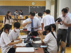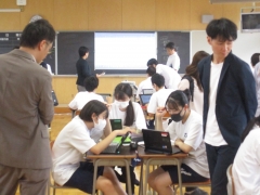 本日、茨城大学教育学部の小林先生に来校していただき、研究授業を行いました。また、近隣の学校や教育委員会からも多くの方々に参観していただき、たくさんのご意見をもらいました。授業を参観していただく中で、生徒たちの課題への取り組みの様子から、本校のICT活用の質の高さや取り組み方について、一定の評価をもらいました。小林先生からも今後、本校のICT活用において取り組むべくポイントを整理していただきましたので、各授業を通して、生徒たちの学びに還元していく予定です。