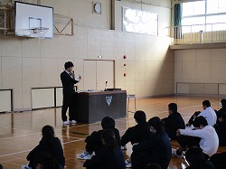 今日で2学期の終了です。朝から大掃除・学年集会・終業式を行いました。大掃除は,今まで使った教室や廊下などをきれいにいつも以上に掃除することができました。学年集会では,各学年とも2学期の振り返りをしっかりとすることができました。終業式では,2学期にあったことを校長先生が振り返り、「全体的にステップアップできた2学期でしたが,自分自身を一人ひとりふり返ってみましょう。」と話をされました。明日から冬休みです。ゆっくりと休んで,1月9日に元気な姿で会えることを楽しみにしています。