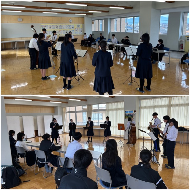 橋北中の生徒が耳傾ける 橋北交流会館で学び舎音楽会