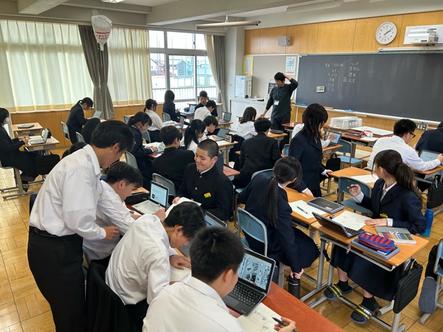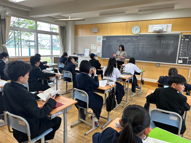 中学生のパワーに先輩は感激、卒業生の画家山内大介さんが特別授業、四日市の橋北中学