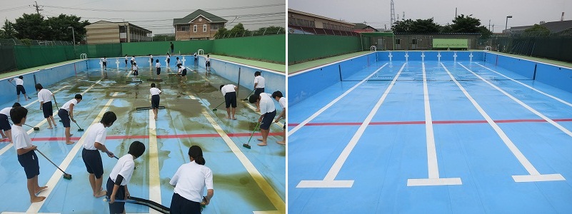 6月16日(火)、6月末から始まる水泳の授業に向けて、体育の時間にプール清掃を行いました。みんなで使うプールの施設を一生懸命きれいにしてくれました。これから暑くなりそうですから、水泳の授業が楽しみですね。