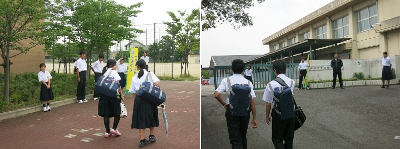 6月18日(木)・19日(金)、生徒会によるあいさつ運動を行いました。生徒会本部・専門委員長・学級委員が、生徒玄関や正門・西門に立ち、登校する皆さんに元気なあいさつを交わしました。天候はすっきりしませんが、気持ちのよいあいさつで、さわやかな朝を迎え、一日がスタートしています。