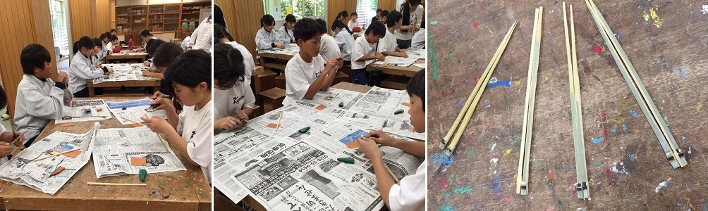 午後のメニューはカヤック体験でしたが、強風注意報が出ているために明日に延期し、替わりに竹箸作りをしました。ナイフを使った作業はなかなか難しいので、箸というより串になった生徒もいました。でもみんな夢中になって取り組んでいました。いいおみやげができました。17:25
